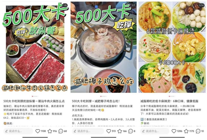 近年来,小红书、抖音的美食、健康博主纷纷开始推崇中式菜肴。商超中的冷食东北大拌菜、凉拌金针菇,减重人必打卡的椰子鸡、潮汕牛肉火锅,已经成为减重人群的低卡美味健康餐,甚至水煮麻辣烫也一度成为减重爱好者的“热沙拉”。