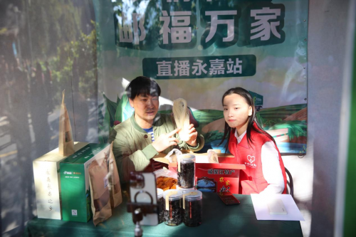 活动现场,两位主播还走出“直播间”,以“边走边播”的方式带领直播间观众游览“永嘉邮政旅游特色农品馆”,详细介绍馆内各类农特产品的特点和制作方式,同时也介绍了永嘉当地的风土人情和名胜古迹,向直播间内的观众送上永嘉文旅“金名片”。
