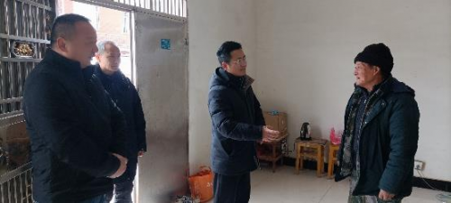 图为龙感湖烟草及社区干部走访慰问困难群众