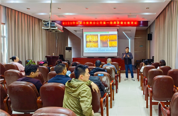 理论培训班上,全国烟叶烘烤技术能手刘昭伟同志结合自己的理论知识和丰富的实操经验,从鲜烟叶成熟度判断、烟叶成熟采收技术、烟叶烤前常见问题、烤房设备检修、科学烘烤等方面为烟叶技术员进行细致讲解。
