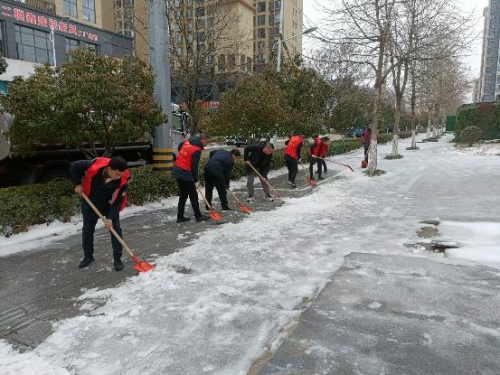 清理现场,党员突击队不顾天寒路滑,身着红马甲,拿着铁锹、除雪铲、扫帚等清雪工具前往包联小区和责任路段清理路面积雪以及大雪压断的树枝。寒风刺骨、冰冷雨雪也没能阻止大家工作的热情,大家有的负责铲雪、有的负责清运,一个个忙碌的身影构成了一道亮丽的风景线,让这个寒冷的冬日变得格外温暖。经过大家的努力,积雪冰层被全部铲除,为过往行人创造了一条平安出行“绿”通道,用“小行动”保障“大民生”。(龚正)