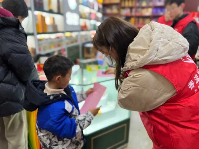 不仅如此,志愿者还携带了纸质灯笼的制作材料,与零售户一起动手制作花灯。零售户张大姐望着悬挂在店堂内的一盏盏花灯,笑意盈盈,“你们把我这小店装点得格外喜庆,看着就欢喜。”“用心经营好当下的每一天,未来的日子一定和这花灯一样红红火火。”为缓解张大姐的心理压力,志愿者在传授开店技巧的同时,也向张大姐送上了美好的祝愿,鼓励她在困境中坚定信心、自立自强。