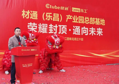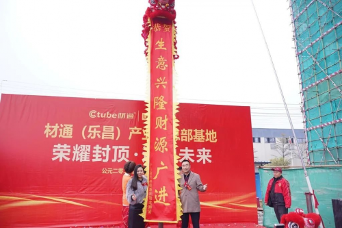 荣耀封顶,通向未来!2024年1月30日,材通管业(乐昌)产业园总部生产基地封顶仪式在广东省韶关市乐昌市产业园盛大举行,材通管业总裁余海先生、副总裁魏丽慧女士携企业高管、乐昌市政府领导、承建单位负责人及媒体等,共同见证材通管业这一具有里程碑意义的重要时刻。