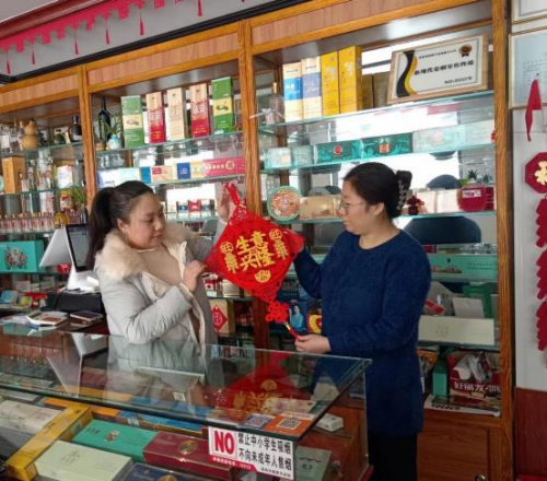 “谢谢你们这么冷的天还来看望我,感谢你们的好意,新的一年我一定会继续努力,努力经营好店铺。白水县零售户微笑着接过中国结,感激地说道。