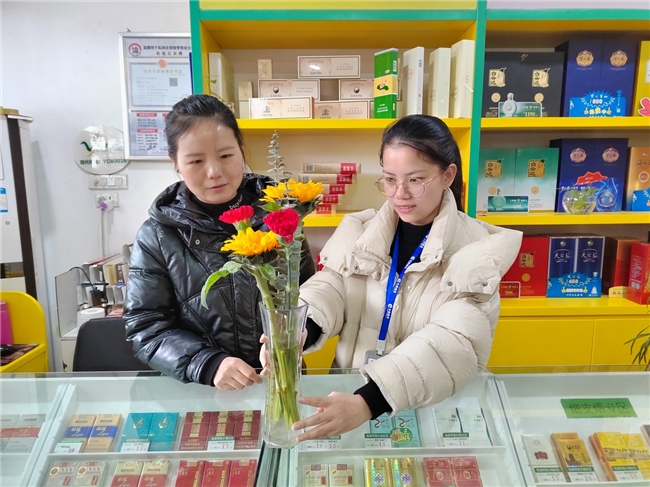 刘春莲回忆起刚开始经营店铺的时候,由于缺乏经验和市场洞察力,生意一度十分冷清。正当她感到迷茫和无助时,烟草部门工作人员伸出了援手。客户经理不仅为她提供了市场分析,还针对她的店铺特点,制定了个性化的经营策略。在客户经理的帮助下,刘春莲开始逐渐理解市场的需求,学会了如何与消费者沟通,如何根据消费者的需求调整产品结构。