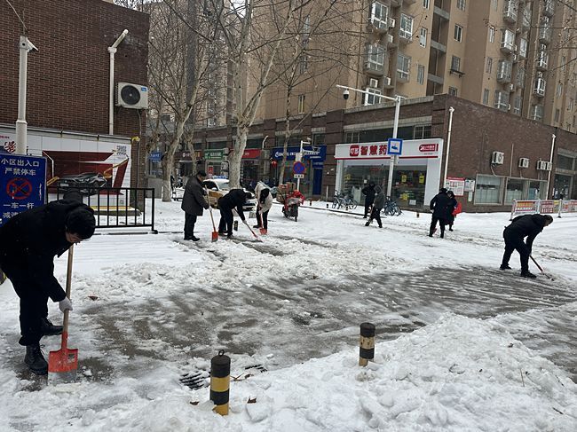 近日,武汉市突降冻雨、暴雪,路面积雪结冰通行困难。为保障职工群众出行安全,洪山区局(营销部)党总支以雪为令、快速反应,主动联系农科院社区,组织党员干部深入社区小区、人行横道开展破冰除霰工作,深刻践行“奉献、友爱、互助、进步”的志愿服务精神。