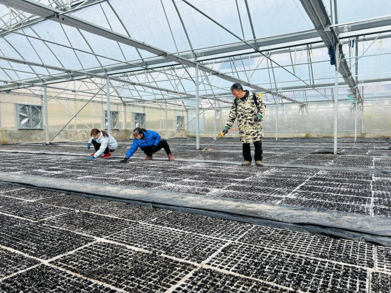 合作社人员对苗盘进行喷水
