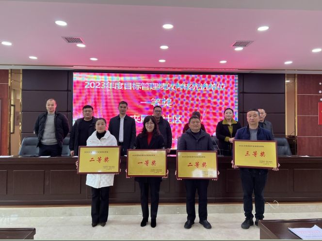 会上宣读了《关于2023年度五一街道村(社区)目标管理绩效考核结果、先进单位及先进个人的通报》,并由街道领导班子为受表彰的先进集体和先进个人颁奖。