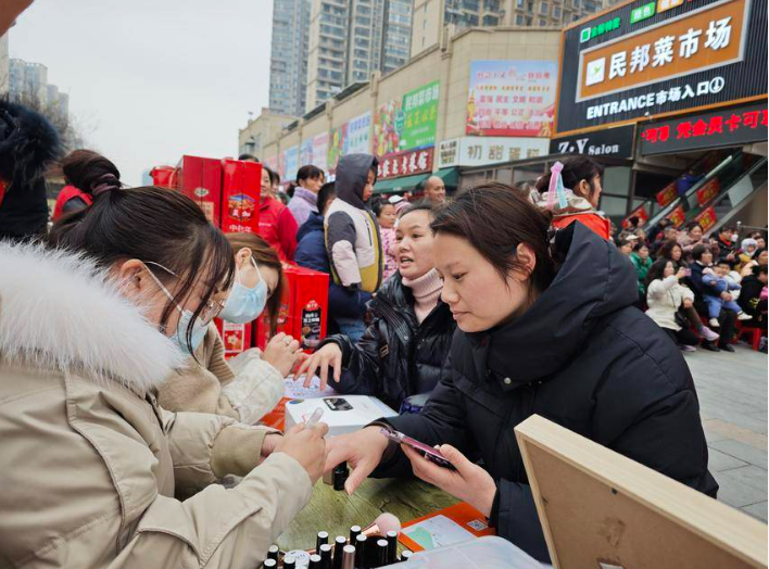 阳春三月,春风送暖。在生机勃勃的三月,当学雷锋日遇上“三八”妇女节,立即焕发出新时代的无限活力。3月6日,伴随着隆隆的锣鼓声与精彩的龙船表演,由董湖社区联合孝南区烟草专卖局及各爱心单位共同举办的“学雷锋·庆三八”志愿服务公益集市在民邦槐荫东岸二期商业街开市。湖北孝感孝南区烟草专卖局组织“姹紫烟红”志愿服务队多名女性志愿者参加活动,传递“雷锋”精神,共襄“三八”盛会,向辖区女性致以诚挚的节日问候。