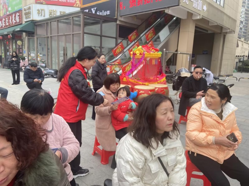 “姹紫烟红”志愿者们作为活动现场秩序的维护者、引导者,在喜气洋洋的氛围中,引导观众有序入座,帮忙照顾年幼的小孩,协助现场设施摆放整理、节目演员上下场等。室外摆放桌椅、整理物资、引导发放,入场下场,井然有序。大家欢聚一堂,展现出基层治理新风貌。