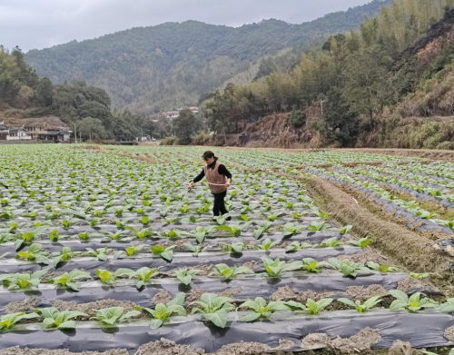 正月期间,陈艳花在打理自家烟田。邓永漳供图