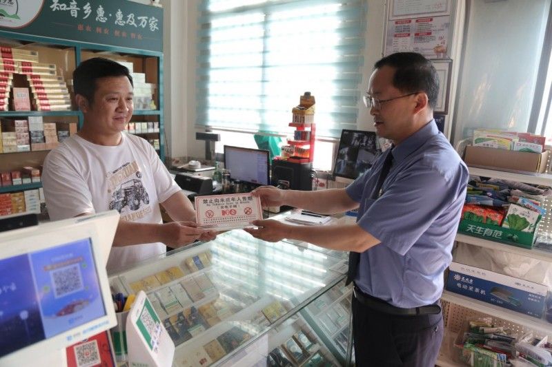 普法同时,通过现场观察、询问顾客和查阅销售记录等方式,检查各零售户是否存在向未成年人售烟行为,是否兜售烟卡,是否存在无证照经营、公开摆卖非法卷烟、电子烟以及使用自动售卖设备销售烟草制品等,是否在经营场所醒目位置张贴“禁止向未成年人出售香烟”警示牌。对店铺没有张贴标识的向其现场发放。为保障未成年人健康权益,必须严格执行向售烟对象核验年龄的规定,督促商家落实向售烟对象核验年龄的规定,严禁向未成年人出售“散烟”、电子烟产品。
