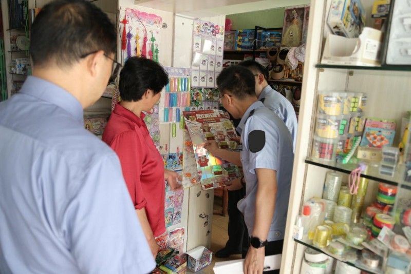 (检查张贴“禁止向未成年人出售香烟”警示牌)
