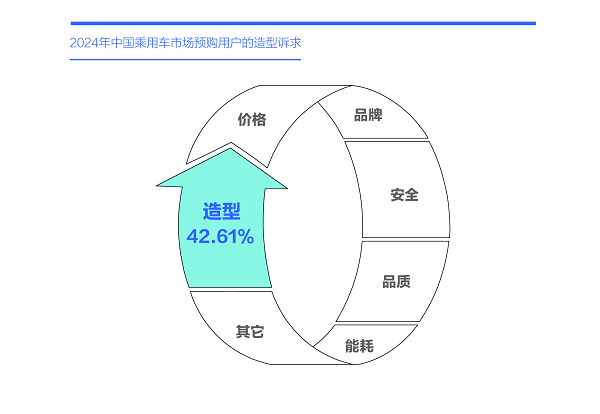 2021-2024年中国车市突然加速个性化趋势,2024年用户的造型诉求高达42.61%,通过优化造型打造爆款产品的环境愈发成熟