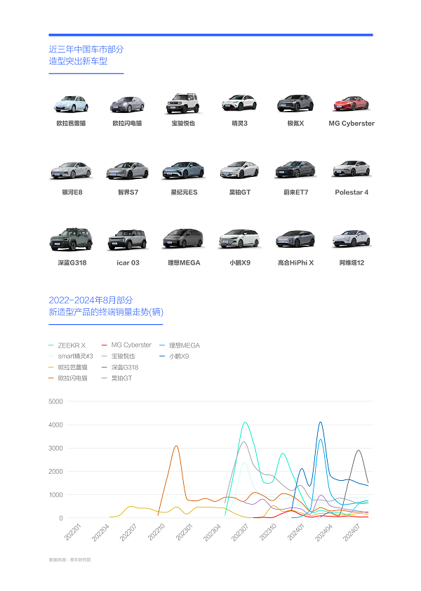 2022-2024年车企投放了一大堆新造型产品,但多数还在艰难磨合,提升造型与销量的转化率仍是车企的棘手课题