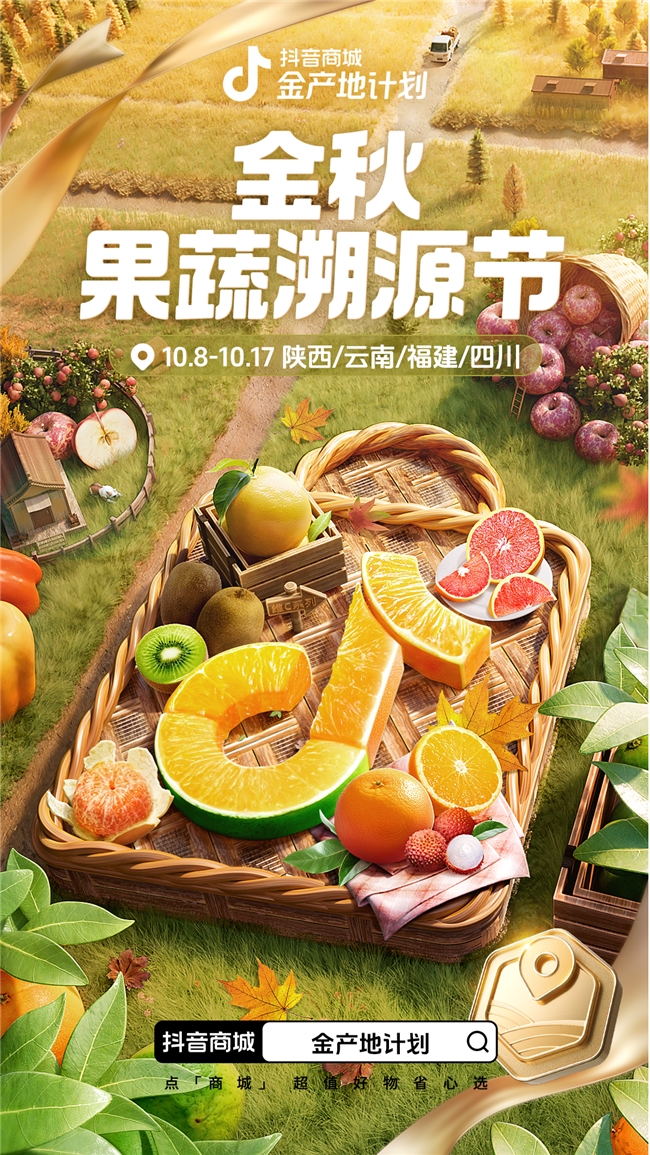 据悉,“金秋果蔬溯源节”活动启动于10月8日。抖音电商深入全国24个果蔬原产地,挖掘宝藏特产,在平台秒杀、超值购、多人团、万人团等货架场景上线官方精选优质好货,帮助消费者选的省心。期间,云南冰糖橙热销超140万单,苹果、柚子日均销售额同比增长超130%。