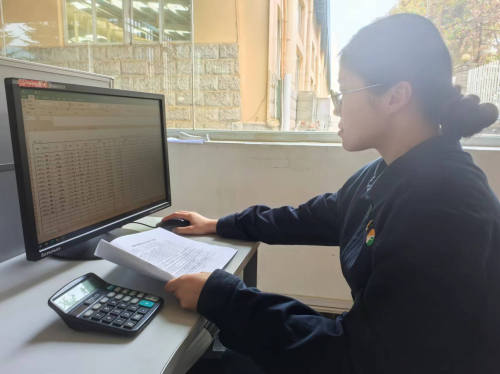(桑蓉在编制烟叶分选报表 马显滔/摄)