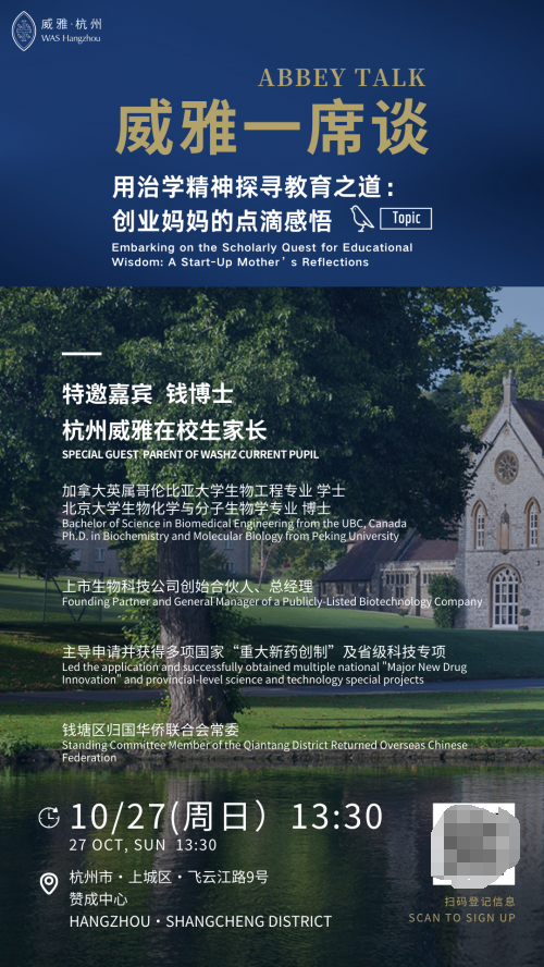 《威雅一席谈》是杭州威雅学校为促进家校沟通推出的社区交流平台。我们将定期邀请家长代表分享自身经验与观点,通过真诚且深度的交谈探寻教育新契机。
