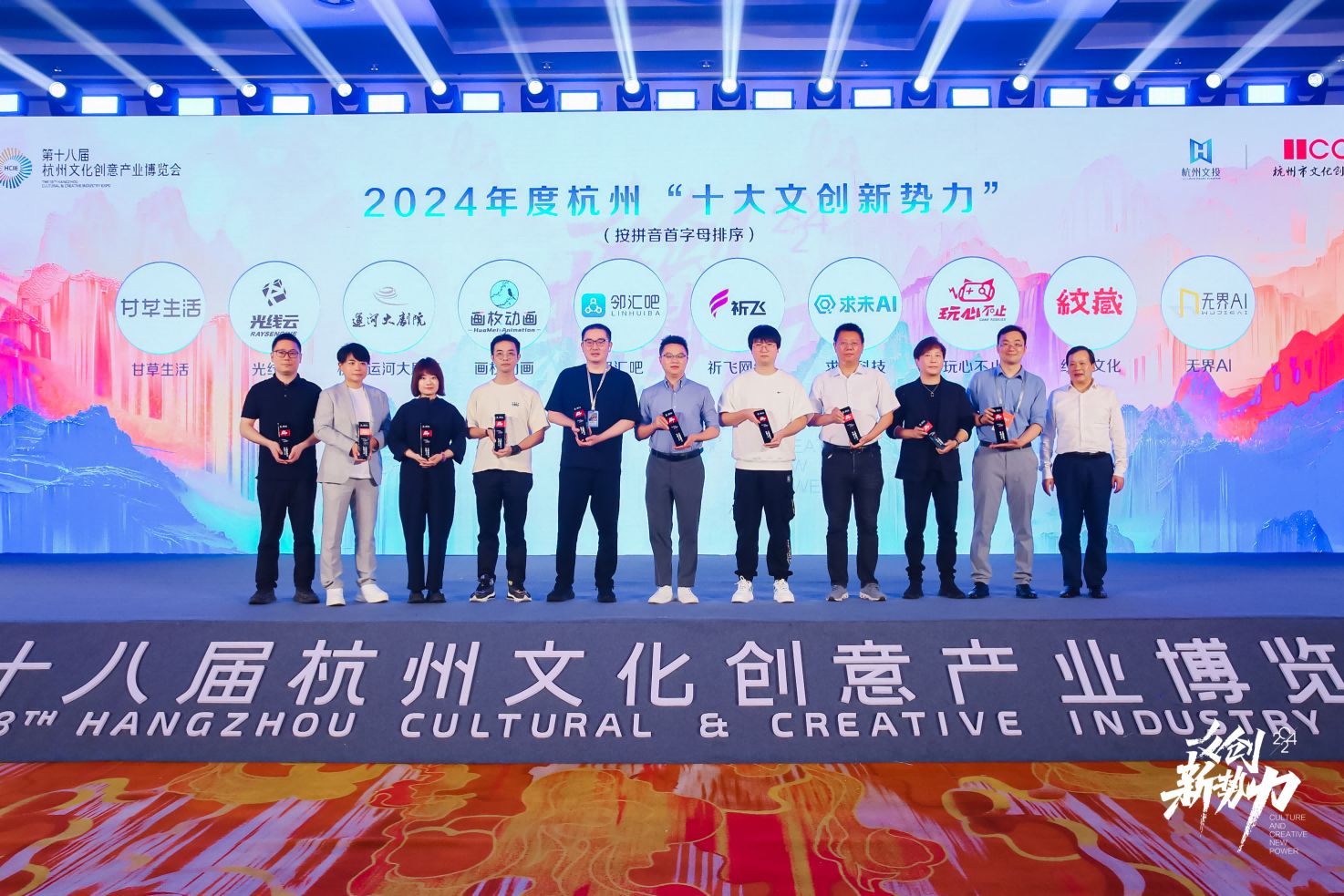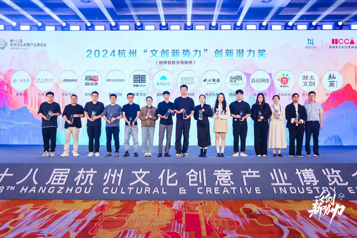 在本届“文创新势力”及“文创青云榜”获奖企业榜单中,不仅有影视生产、动漫游戏、创意设计、文化消费、现代演艺领域的企业,更有数字内容、AIGC、数字营销、文化直播等领域企业,充分展示传统与现代、文化与科技等多元融合、百花齐放的杭州文化产业高质量发展良好局面和美好前景。
