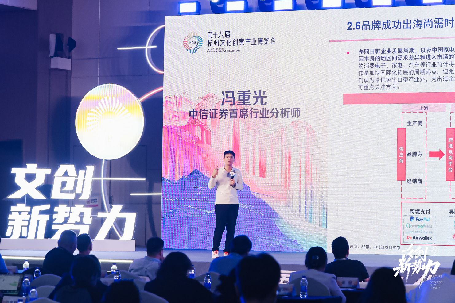 全球化浪潮中,中国文化品牌多元发展,在国际市场上精彩绽放、展现独特魅力。在颁奖盛典上,围绕中国品牌如何成功出海、如何讲好中国文化故事,服务贸易创新发展基金执行董事任正浩、中信证券首席行业分析师冯重光、“歪果仁研究协会”联合创始人、CEO和2019福布斯中国UNDER 30获得者方晔顿等嘉宾分别围绕“乘跨境电商东风,中国品牌出海之路” “中国消费出海启航正当时” “国际视野下的中国品牌传播策略”等内容进行主题分享和趋势解读。