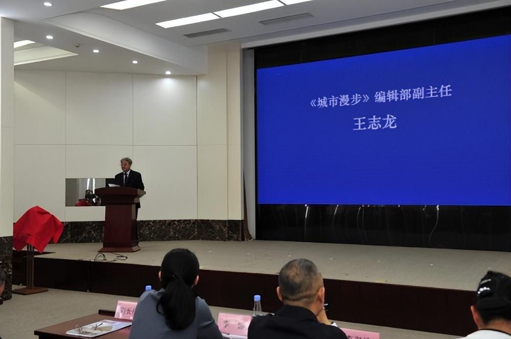 图为《城市漫步》编辑部副主任王志龙详细介绍了《城市漫步》会客厅的成立背景、计划和目标。