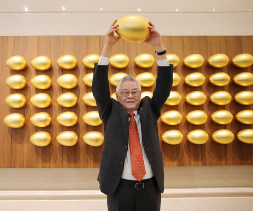 震旦集团创办人陈永泰举起第60颗“金蛋”