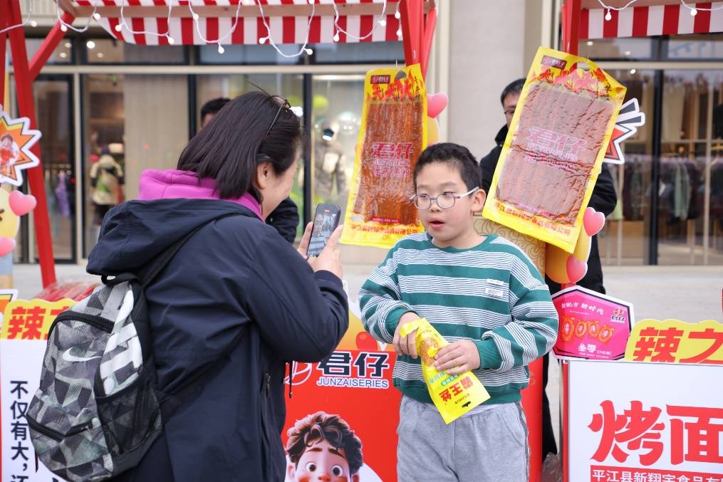 红红火火的辣条、琳琅满目的食品、各式各样的摊位、熙熙攘攘的人流……10月20日下午,首都北京民众在朝阳大悦城正门广场举办的“辣之龙”休闲食品集市活动上体验到了来自湖南省平江县的特色休闲美食,不少80后、90后消费者在品尝了麻辣鲜香的辣条后,更是表示“找到了儿时的味道”。而这正是2024年“吃货节”食品文化巡礼暨第三届中国(平江)休闲食品文化节活动向大众展示的内容之一。