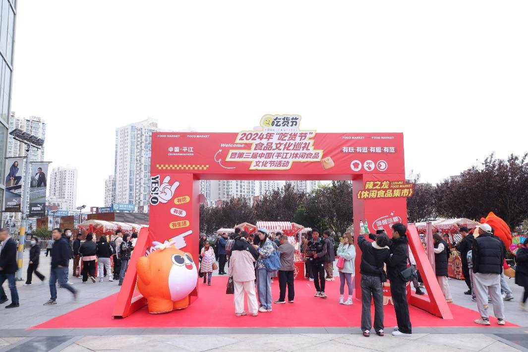 2024年“吃货节”食品文化巡礼暨第三届中国(平江)休闲食品文化节活动于10月18日在长沙召开新闻发布会,随后开启了为期5天的“辣之龙”京津行活动。6台统一涂装“中国·平江‘辣之龙’京津行”LOGO的车辆自长沙出发,途经天津,到达北京。10月20日,在“辣之龙”活动车辆抵达北京当天,在朝阳大悦城举行了盛大的“辣之龙”休闲食品集市开市仪式。工业和信息化部消费品工业司食品处处长纵瑞龙,工业和信息化部工业文化发展中心副主任李宁,中粮集团对外合作部总监陈刚,中国动漫集团党委书记、董事长史自文,平江县委副书记、统战部部长鲁勇,平江县高新区管委会主任刘长江,大悦城控股党委委员、副总经理兼北方大区党委书记、总经理田佳琳,中漫(北京)文化发展有限公司负责人邱军,北京商务中心区信链科技有限公司总经理刘思涵,北京嘉诚兆业集团总经理韩凯然等嘉宾及湖南麻辣王子食品有限公司、平江县新翔宇食品有限公司等企业代表出席了开市仪式。