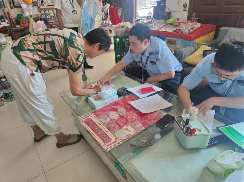 图为执法人员对违法售卖“烟卡”市场主体开展行政处罚。周雄飞 摄