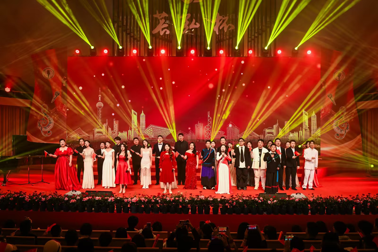 青春与激情的碰撞音乐展演环节更是精彩纷呈。在原创主题歌曲《我们是青春的歌者》的激昂旋律中,展演拉开序幕。“十佳歌手”选手以合唱、独唱等形式精彩登台演出。美声组的选手们用嘹亮而醇厚的嗓音,展现了音乐的魅力;民族组的选手们以悠扬的旋律和独特的民族风情,唱出了对祖国大好河山的热爱;通俗(流行)组的选手们则用时尚的节奏和动感的表演,彰显了青春的活力。他们唱响了青春一代的爱国情怀,以最真挚的情感、最动人的旋律,向祖国献上了最崇高的敬意。