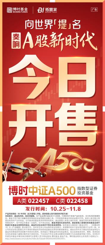 博时中证A500指数基金风险等级为中(此为管理人评级)。指数历史表现不预示未来,不代表相关产品收益。