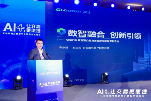 会上,广联达科技股份有限公司副总裁布宁辉分享了以《AI助力公共资源交易高质量发展的探索和实践》为主题的精彩演讲,并面向行业重磅发布“广联达AI交易整体解决方案”。