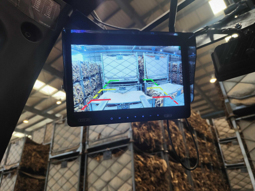 图为不积跬步QC小组安装小型高清摄像头后实现叉车作业盲区可视化