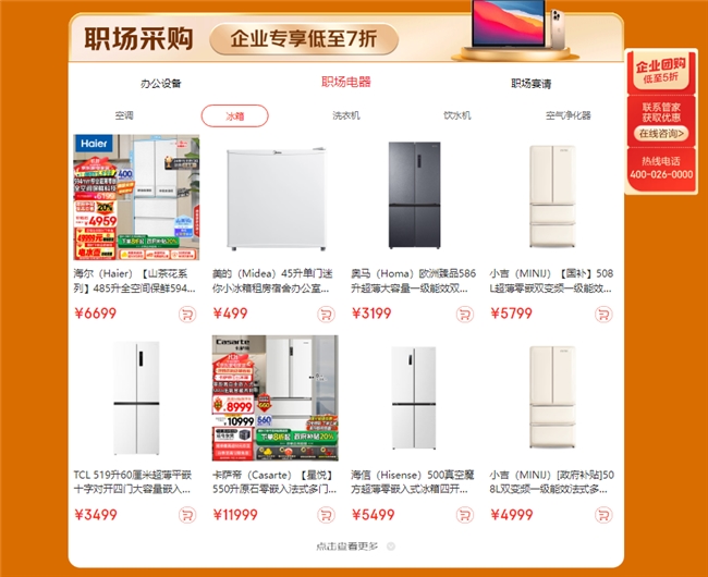 办公设备向来是企业采购的“重头戏”,在中央和各地政府以旧换新补贴的加持下,企业采购换新办公设备的需求被进一步激发。在“企业会员日”职场采购专区,京东企业购联合Apple、联想、格力等知名品牌伙伴,带来了办公设备、职场电器、职场宴请等多品类爆款产品。