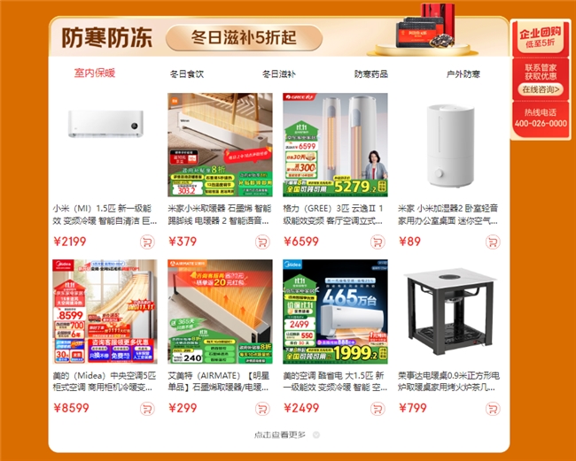 比如,“企业会员日”期间精选的格力1.5匹壁挂式空调挂机、康佳家用立式电暖气、米家小米即热饮水机S1等家电类商品,能够帮助企业营造更加温暖舒适的职场和办公环境;安踏三层速暖羽绒中长款、伟光棉安全帽仿羊剪绒等个人防护用品,则能给予员工提供更好的冬季安全生产和防寒体验。