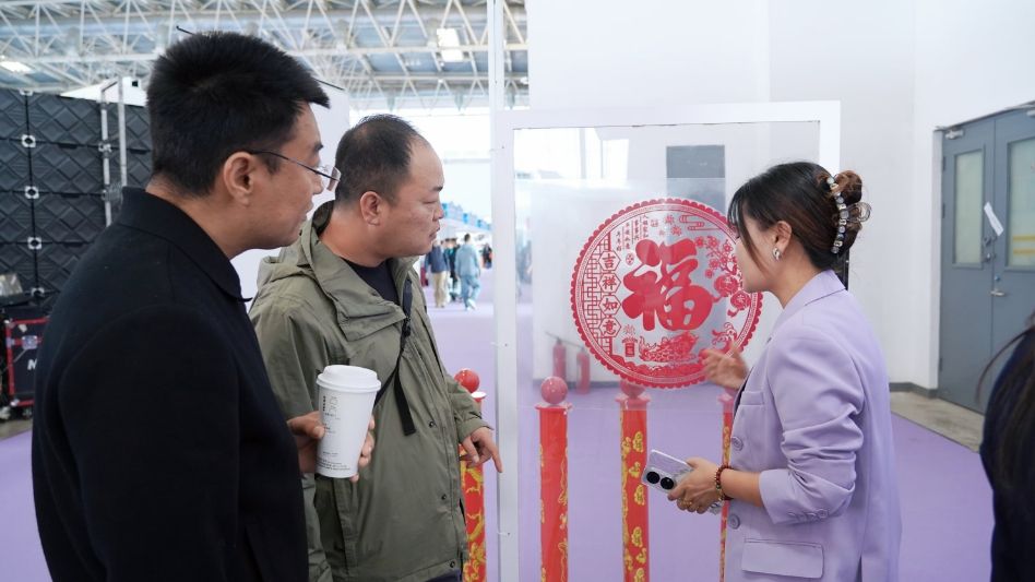 与其它展台充满各类高科技设备的场景形成鲜明对比的是,四川磁创感应的展台布置得极为简洁,仅在展台展板上贴着一些红色的窗花纸或腰封贴,更令人费解的是却络绎不绝地有参观者围观洽谈交流。