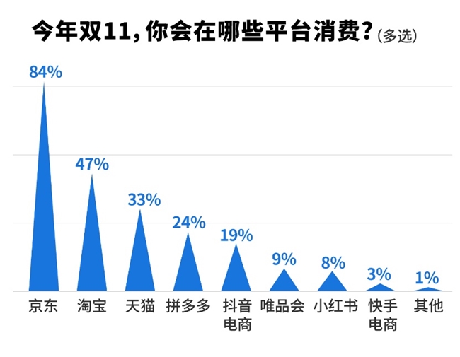 调研显示,超七成消费者认为京东是能够将价格、产品(品质、品牌等)和服务(物流、售后等)做到最优最均衡的平台,在综合质价比方面更具有竞争力。因此,有84%的消费者表示今年双十一会选择京东消费,京东成为首选的购物平台。