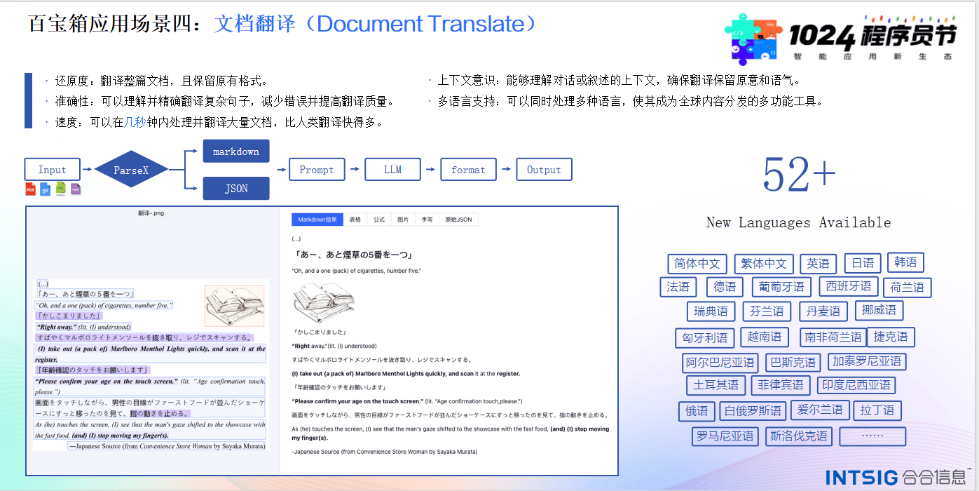 近期,第五届长沙·中国1024程序员节在湖南长沙举行。大会由湖南省工业和信息化厅、湖南湘江新区管理委员会、长沙市工业和信息化局、长沙信息产业园管委会和 CSDN 联合打造。大会期间,合合信息面向广大开发者,开放智能文档处理“百宝箱”系列产品(简称“百宝箱”)免费体验。“百宝箱”覆盖文档处理流程多节点,支持批量、高效、准确解析多种版式的文档材料,解决文档解析精度低、解析效果评估难和大模型幻觉等问题,助力技术人员实现个性化、高效率的文档类应用开发工作。
