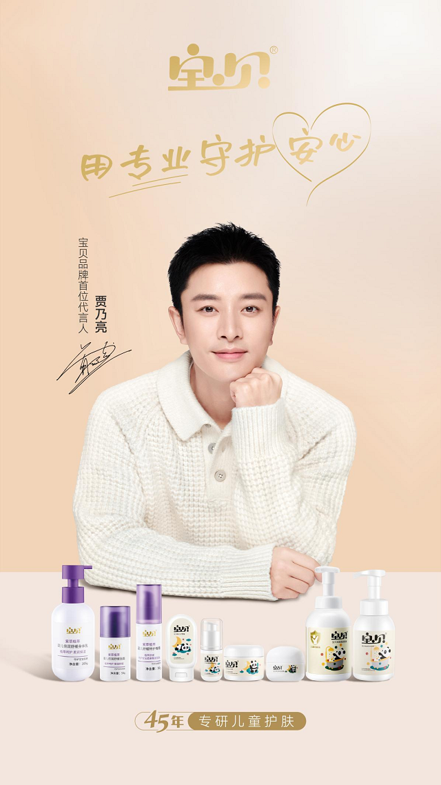 「宝贝」作为一轻日化旗下专研儿童肌肤健康品牌,自1979年创立以来,始终致力于为中国儿童提供安全、有效的肌肤护理解决方案。品牌以“用专业守护安心”为理念,坚持天然、温和护肤,赢得了广大消费者的信赖与喜爱。此次「宝贝」携手贾乃亮,更是希望通过其阳光、活力、健康的形象,将「宝贝」产品带给更多中国宝贝。