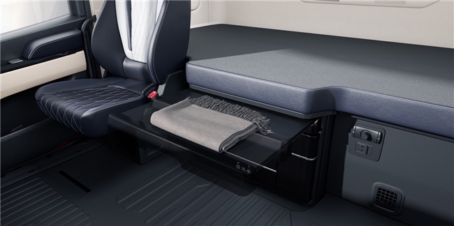 此外,配备多个充电接口,满足多个手机同时使用,以及手机投屏、无线充电等功能,如无线充电功率达到55w,半小时充电80%,远超行业水平。951.3L超大储物空间巨能装,满足日常用品的收纳需求。超宽下卧铺达到1150mm, 上卧铺可以翻折,不仅可以释放站立时的头部空间,同时对上铺的物品起到防掉落的作用,细致入微的关怀让用户在干线运输的征途中,实现舒适挣钱双重享受。