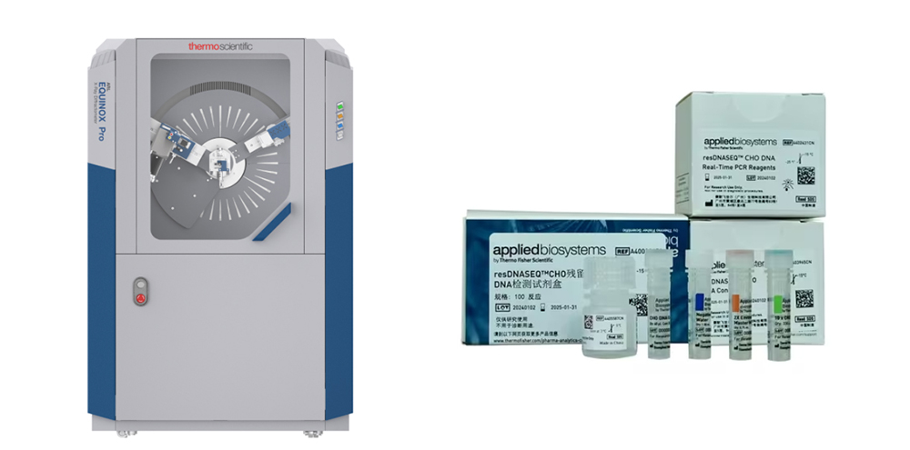 图:从左至右依次Thermo Scientific ARL EQUINOX Pro 立式 X 射线衍射仪、Applied Biosystems ICFC resDNASEQ 宿主细胞残留 DNA 检测试剂盒