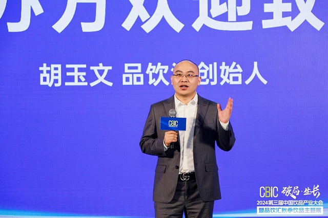 品饮汇创始人胡玉文在开场致辞中,对今天中国饮品行业的竞争格局和市场动态做了整体分析。他指出,我们正处在一个被互联网浪潮和新零售商超所冲击的新商业时代,很多商业模式正在进行重构,这促使我们每一位必须勇敢站出来,用未来的视角看现在,依托新质生产力,构建企业核心的竞争壁垒,这才是破局之本。