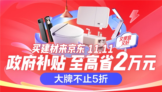 10月31日晚8点,京东11.11正式开场!补贴翻倍,限时28小时!京东建材品类携手箭牌、恒洁、施耐德、汉斯格雅、海尔、立邦、凯迪仕、霍尼韦尔、威克士等大牌,不仅带来每晚大牌1元抢的福利,入手低至1元的海尔浴霸、11.11元的孩视宝护眼灯、111元的凯迪仕智能门锁、111元的恒洁大置物台花洒套装、1111元的箭牌智能马桶等爆款及新品,还有至高再减20%的政府补贴,以及免费拆旧、免费清运、免费送装的优质服务。即日起至11月11日,消费者打开京东APP搜索“抢福利”,还可解锁百大品牌准备的专属1元福利包、0元入会礼,福利提前抢,省心更省薪!