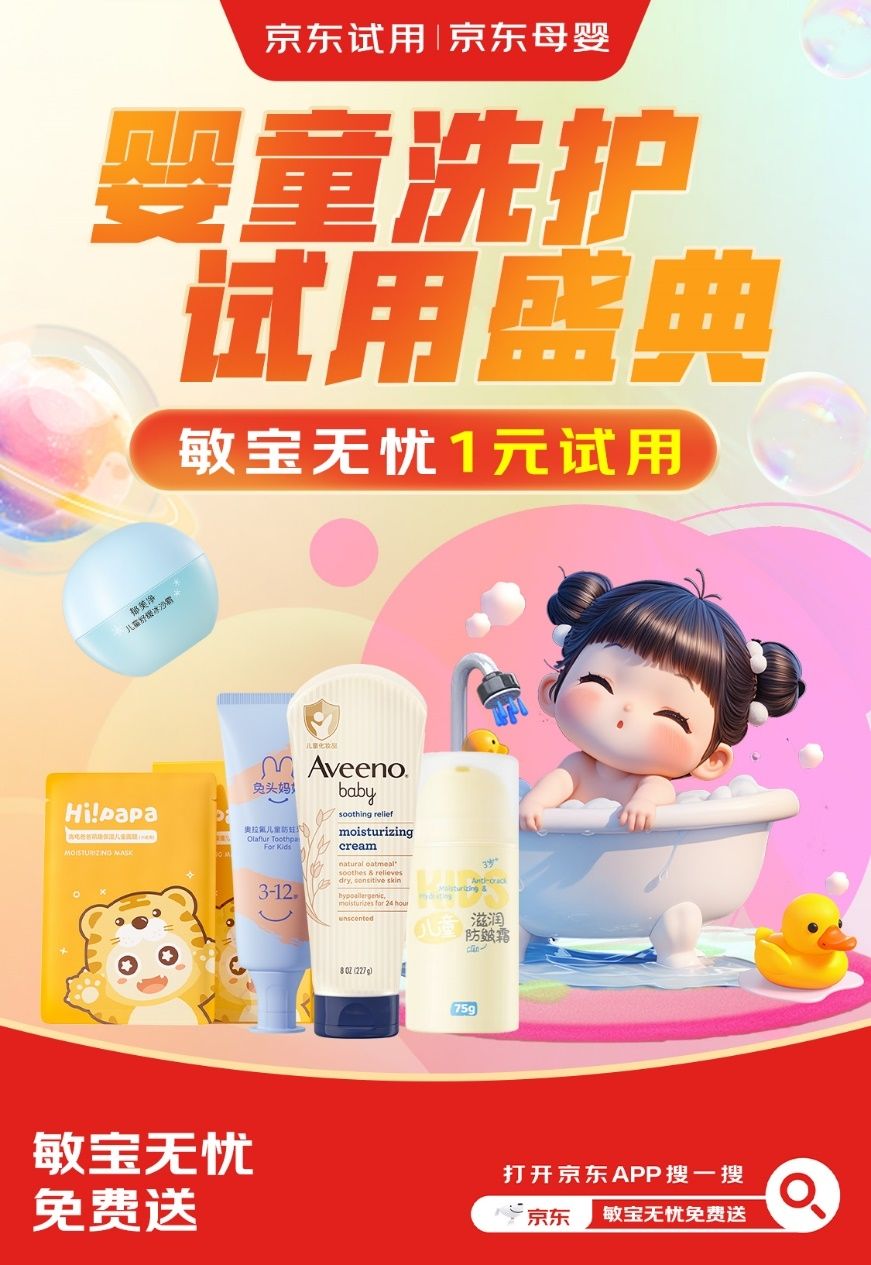 每月7日定为婴童洗护品类试用日 京东超市11.11期间加量发放12万件试用产品