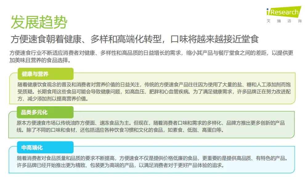 一是行业发展趋势和消费者需求端的变化。从大盘上来看,国内的方便速食行业在近几年一直朝着多样化和高端化转型。同时从消费侧来说,艾瑞咨询数据显示,79%的消费者购买方便速食产品的原因是食用方便,但在新锐白领和中产人群中,人们已经不满足速食产品里只有简单的调料包,愿意为更丰盛的食用体验和更高品质的产品买单。