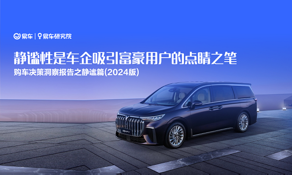 为了助力车企更好提升“静谧卖点与车型销量”的转化率,易车研究院尝试撰写静谧报告,但我们必须坦诚告知,易车研究院不擅长静谧的技术研究,我们仅在中国车市的用户研究领域有一定积累。针对易车研究院的优劣势,本报告聚焦用户诉求,不探究静谧具体技术,争取扬长避短,希望给车企、经销商等易车客户,提供一份有差异化价值与坚守独立第三方立场的参考材料;