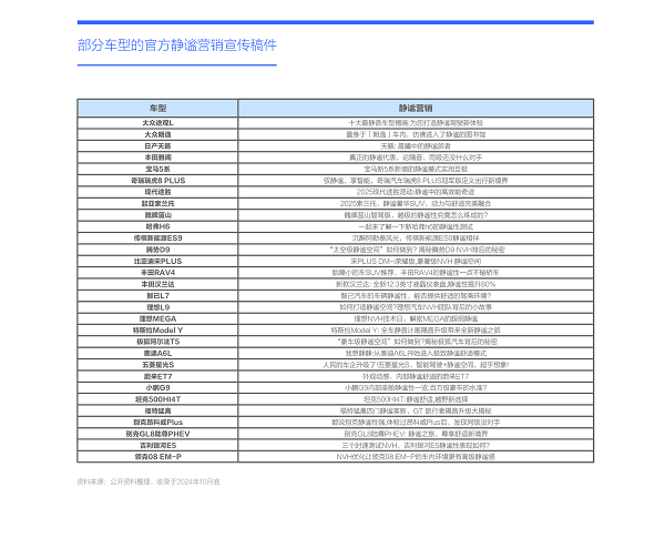 由于静谧在整体诉求排行中非常靠后,一旦其被视为“普世性卖点”,静谧营销容易被边缘化。目前,在多数车企的营销稿件中,静谧产品点仅有一句话或一段文字,纯属“跑龙套”。即便是独立成篇的静谧营销稿件,往往也是篇幅很小的“豆腐块文稿”和东拼西凑的“论坛稿”。围绕静谧卖点开展的营销事件,更是寥寥无几;