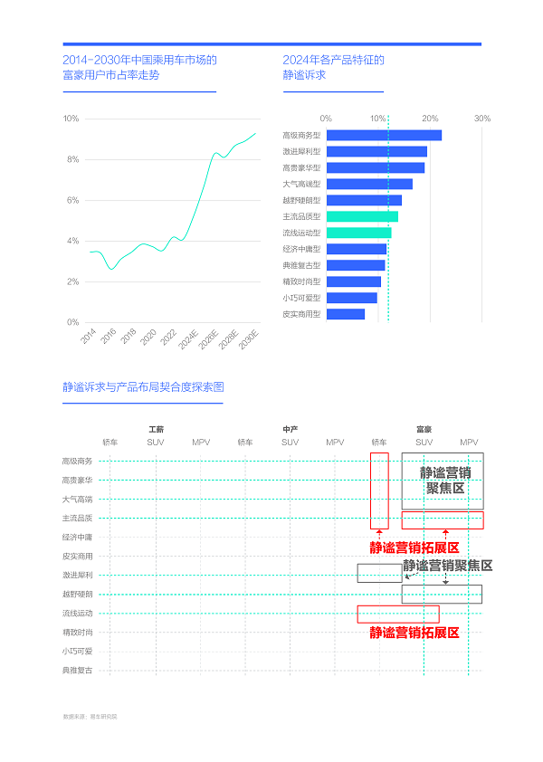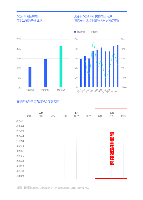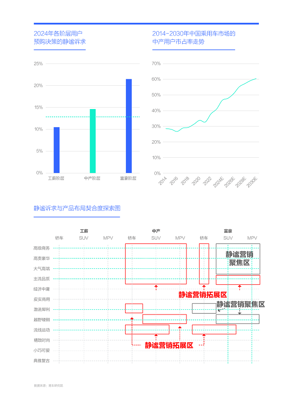2024-2030年,中产车市将成为主流车市,车企除了持续挖掘富豪用户的静谧诉求,也得积极探究中产用户的静谧诉求