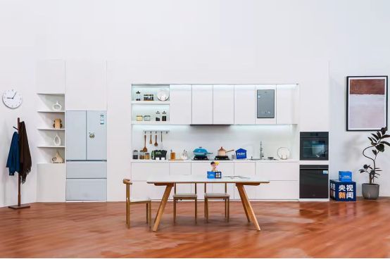 四是一体化,用户想要定制家,海尔智家就提供智慧家电家居一体化方案。通过智慧家庭场景品牌三翼鸟,为用户提供从产品到客厅、阳台、厨房等智慧场景解决方案,满足所有对家的想象。例如新品卡萨帝星悦套系,厨房采用了燕羽灰晶瓷星光面板的星悦冰箱、海盐白配色的星悦油烟机,做到了与橱柜面面齐平、完美嵌入。而且走进厨房,AI食材管家还可以智能推荐膳食方案,让用户享受更高端的美食生活。