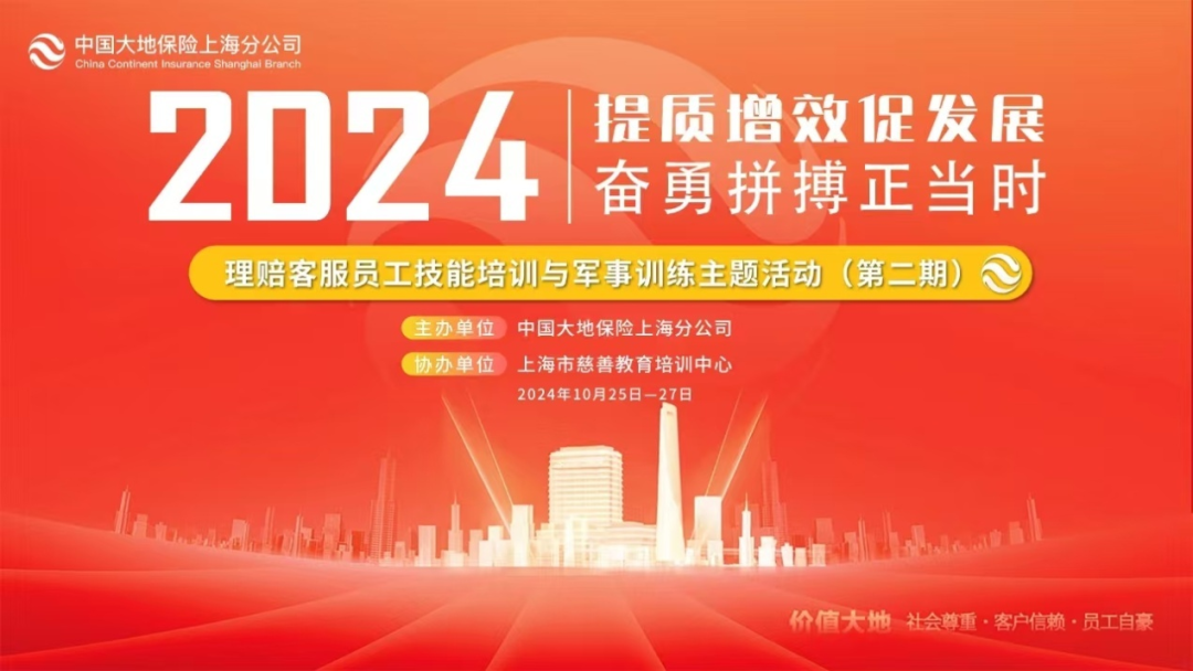 10月25日至27日,中国大地保险上海分公司在上海第二工业大学、普陀区民兵综合基地举行了理赔与客服员工技能培训与军事训练主题活动。